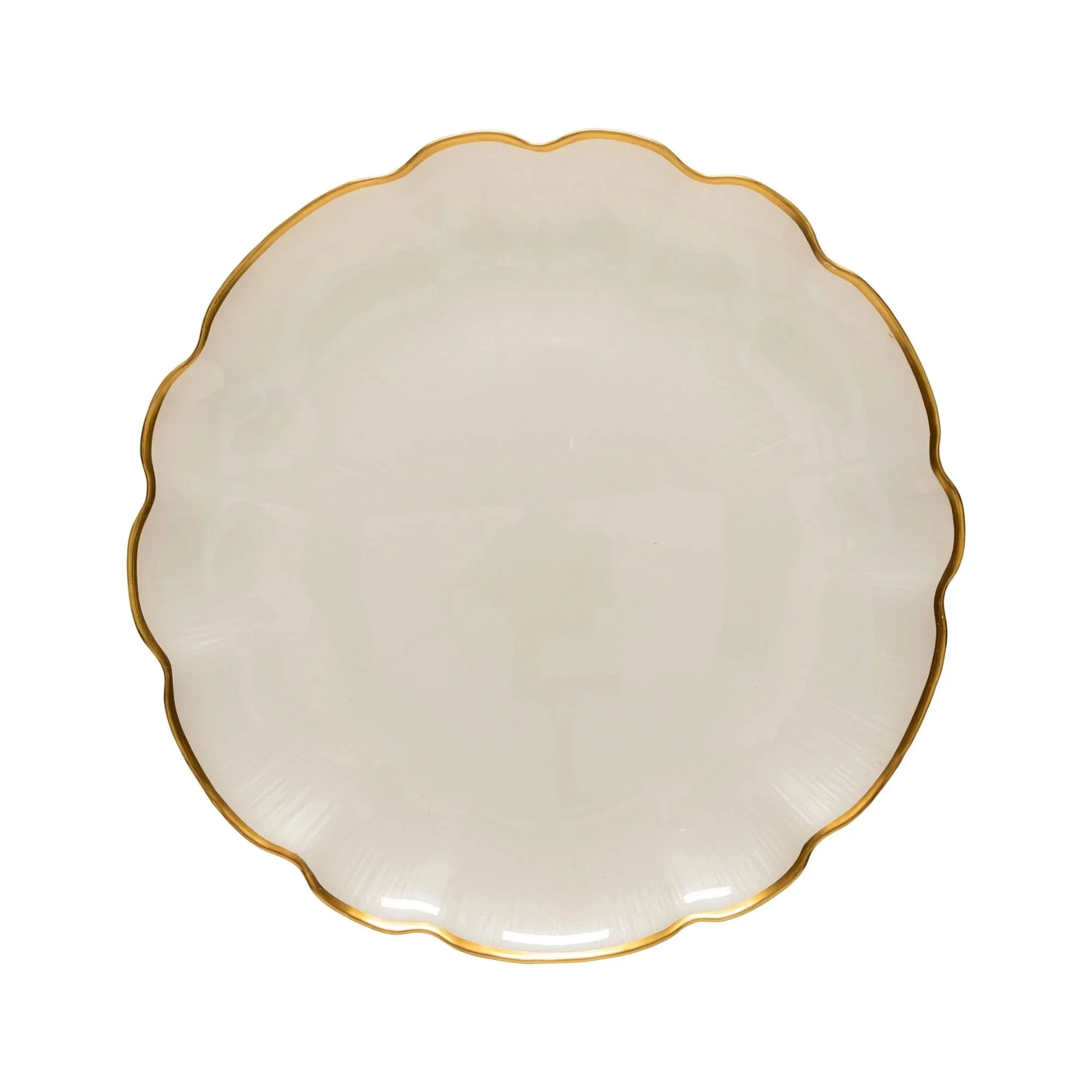 White Glass with 12k Gold Trim/Portugal - Charger Plate $12.00, Dinner Plate $7.50, Salad Plate $6.50 Summer 2026